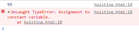 let은 선언후 99로 값을 재할당하는것이 가능하지만