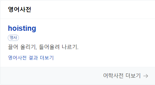 자바스크립트 엔진은 코드를 실행하기 전 모든 선언부의 스코프를 최상단으로 끌어오게 됩니다.