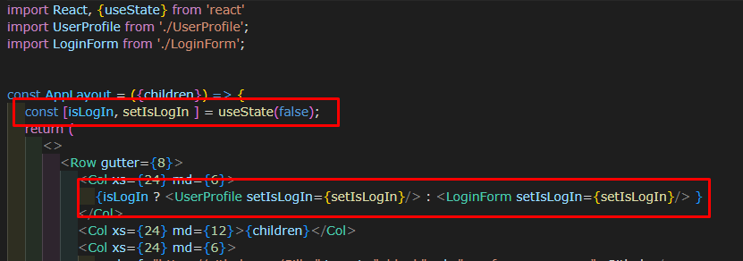 isLogin을 useState로 만들고 초기값은 false로 줍니다.